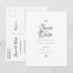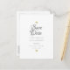 Cette carte de réservation chic présente des cupidons dorés au-dessus et en dessous de vos détails de réservation, présentés dans une typographie classique élégante. Le verso contient des détails supplémentaires sur la réservation, y compris votre site web de mariage, avec votre adresse de retour et un espace pour l'adresse de votre destinataire.