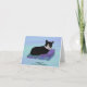 Illustration graphique de Tuxedo le Chat faisant la sieste sur les oreillers de lancer. Customisez cette carte avec votre message personnel pour toute occasion spéciale.