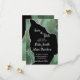Cartes de sauvegarde avec un design agate vert et paillettes argentées sur un fond noir pour votre grand jour. Personnalisez ces cartes avec vos noms, le lieu et la date de votre mariage.