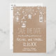 Cartes de sauvegarde de date de lanternes en feuille d'argent rustiques en hiver sur une image de papier brun.