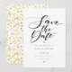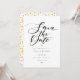 Cette carte de sauvegarde minimaliste présente deux cœurs dorés et une élégante écriture pour sauvegarder la date au-dessus de vos coordonnées dans une typographie élégante. Le verso présente des cœurs dorés en confettis. Conçu par Thisisnotme©