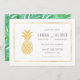 Cartes de sauvegarde Simple Gold Pineapple, partie de notre collection de papeterie de mariage tropicale à l'ananas. Caractérisé par des feuilles tropicales aquarelles en arrière-plan avec des accents de feuille d'or faux sur le devant.