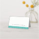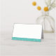 Cartes de table pour le petit-déjeuner modernes et tendance avec paillettes bleu sarcelle, turquoise, bleu œuf de robin, conçues pour aller avec des invitations avec paillettes bleu aqua. Espace sur le devant pour que vous puissiez écrire les noms des invités. L'illustration est une image imprimée à plat, et non des paillettes réelles.
