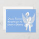De jolies cartes de table de mariage bleues et blanches, avec une fourchette et une cuillère en argent attachées ensemble avec un ruban blanc et de la dentelle. Parfait sur vos tables réservées. Personnalisez chaque carte pour qu'elle corresponde à vos besoins.