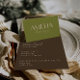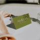 Carte de table de mariage élégante et raffinée conçue pour un cadre de table de réception propre et élégant à l'ancienne. Cette carte d'accompagnement pliée présente un nom de mariage écrit à la main associé à une typographie contemporaine. La décoration de mariage vert olive ajoute une touche fraîche et stylée à votre mariage. Parfaite comme carte de nom d'invité personnalisée pour une célébration de mariage chic et simple. Utilisez cette carte de table pliée élégante pour sublimer votre décoration de table de réception moderne. Une carte de table de mariage contemporaine sophistiquée qui complète tout thème de mariage minimaliste.