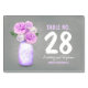 Joli, amusant et simple peint en désordre pot de mason et fleurs violet clair fleurit cartes de numéro de table, cartes de place. Parfait pour un mariage rustique moderne avec des pièces centrales en bocal de mason peint.