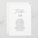 Ces délicates cartes de sièges à numéro de table argenté sont parfaites pour un mariage moderne. Le design minimaliste romantique présente une belle et élégante typographie gris argenté sur un arrière - plan blanc au look épuré et simple. La carte s'imprime à l'avant et à l'arrière (double face).