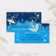 Carte de visite mignon pour un couchet, couturier ou broderie artisanal avec des anges à coudre volants dans l'espace avec des étoiles brillantes, parfait pour les projets de courtepointe, de couture ou de broderie.