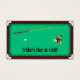 Ce carte de visite dispose d'un billard, d'un bâton de piscine, d'une boule de sauvetage et de boules de billard. L'image est répétée sur le dos, avec deux images transparentes sur le dessus. Tout le texte est entièrement personnalisable.