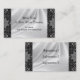 Cartes de visite professionnels de dentelle noire élégante sur l'arrière - plan blanc de satin. Les cartes de visite uniques avec un rétro tissu noir antique vintage de roses de dentelle regardent sur l'avant et sur le dos de la carte prête pour que vous ajoutiez votre information faite sur commande. Le texte noir et beau de manuscrit sur l'avant et sur le dos peut facilement être changé. Perfectionnez pour le décorateur intérieur, le mariage et les affaires nuptiales de robe, l'organisateur, le magasin vintage, et l'habillement, cousant, des affaires de textile de tissu également.