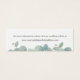 Une façon économique d'envoyer un boîtier avec vos invitations de mariage est de faire imprimer vos informations sur ce mini stock carte de visite. Ce design particulier comprend un exemple de texte pour fournir à vos invités votre site Web mariage. Personnalisez simplement l'exemple de texte avec le texte souhaité. Accentué de feuillage d'eucalyptus aquarelle, ce design s'harmonise avec une suite de produits mariages assortis. Le jeu de couleurs vert/bleu-vert fonctionne très bien pour les mariages en toute saison de l'année.