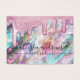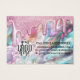 Cette carte de présentation de logo pour l'entreprise de boucles d'oreilles basses suspendues, girly et glamour, est le moyen idéal pour styliser votre emballage et ajouter votre propre touche personnelle et personnalité. Elle représente de fausses gouttes épaisses et scintillantes imprimées sur un fond nacré perle, opale, holographique et iridescent avec une palette de couleurs comprenant le rose, le vert sarcelle, le violet, le blanc, le bleu et le jaune doux. Elle présente également une typographie à l'écriture manuscrite douce et délicate pour correspondre à l'allure mignonne et moderne de ce design. C'est joli, glamour, chic et tendance ; le moyen idéal pour faire la publicité de votre entreprise et styliser vos supports marketing et publicitaires pour vos clients. (Les trous de boucles d'oreilles sont des marqueurs imprimés uniquement, la perforation doit être effectuée par le client)