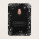 Une carte d'affichage pour vos boucles d'oreille ou bijoux faits main. Un arrière - plan noir classique, texte blanc.Décoré avec de la poussière de parties scintillant fausse argent. Personnalisez et ajoutez votre nom et vos coordonnées sur le devant. Retour : ajoutez votre photo de profil au dos et utilisez l'occasion pour raconter à vos clients l'histoire de votre marque. Supprimer si non voulu.