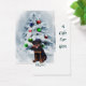 Beau art de vacances Rottweiler. La jeune rottie est adorable à côté d'un arbre de Noël boisé décoré. Cartes, ornements et vêtements. Beaucoup d'idées cadeaux pour les amoureux de Rottweiler pour faire le cadeau de vacances extra spécial.