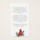 This elegant memorial prayer card is designed to celebrate a life well lived, featuring a softly faded photo, graceful script typography and a symbolic red cardinal resting on evergreen branches. Often associated with comfort and enduring connection, the cardinal adds heartfelt meaning to the design. The back includes a reflective message of remembrance and hope, making this card a meaningful keepsake to share at a funeral, memorial service or Celebration of Life with family and friends. Its small and portable size of 3.5x2" (wallet-sized) makes it convenient for loved ones to carry it with them as a reminder of your loved one’s life and spirit. Personalization makes each card unique.