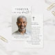 Keep the memory of a loved one close with this custom personalized prayer card featuring one cherished photo, the sentiment FOREVER IN OUR HEARTS, name and dates on the front and the editable prayer "Do Not Stand At My Grave And Weep" that you can change to a heartfelt remembrance message, bible verse or meaningful poem accented with a cross on the back. With its simple yet elegant classic black and white design and elegant script typography, it makes a meaningful keepsake to share at a funeral, memorial service, visitation, wake or Celebration of Life and offers comfort and a lasting tribute for family and friends. Its small and portable size of 3.5x2" (wallet-sized) makes it convenient for loved ones to carry it with them as a reminder of your loved one’s life and spirit.