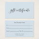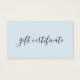 Cartes De Visite Certificat cadeau d'entreprise bleu pastel moderne