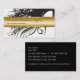 Cartes de visite modernes chics de coiffeur avec la belle image des cheveux débordants à l'arrière-plan et à la grande disposition des textes que vous pouvez customiser pour faire à ceci vos propres, avec l'emblème élégant de nom de la société d'or. Les meilleurs cartes de visite pour la beauté, les coiffeurs, le coiffeur, ou le salon de coiffure.