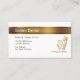 Voici un modèle chic de carte de visite de bureau de dentiste comprenant un emblème qui accentue votre nom de la société et symbole de dent coloré par or. Organisez la disposition des textes votre manière et commande pour vos membres du personnel. Conçu pour un dentiste, une clinique dentaire, ou un chirurgien-dentiste.