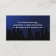 Cartes de visite clair de lune bleu foncé avec silhouette de la ville. Idéal pour une carte de visite de studio de danse, carte de visite de boîte de nuit, carte de visite de restaurant ou toute autre entreprise vespérale. Personnalisez en ligne.
