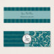 Un motif floral numérique transparent de teinte de bijou crème turquoise et argent sur le dessus, et vintage vieilli de style satin turquoise et aquamarine rayures sur le fond, avec un recouvrement de ruban avec un sceau de texte monogramme personnalisable.