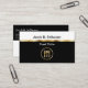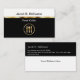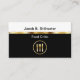 Cartes de visite critiques alimentaires avec un design à deux côtés noir et blanc puissant mais simple qui comprend une ligne de séparation en métal doré simulée imprimée sur le devant, un symbole de plaque alimentaire, et la disposition du texte que vous pouvez customiser et personnaliser. Meilleurs cartes de visite pour un professionnel de l'examen des aliments, critique ou goûteur alimentaire.
