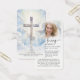 This elegant memorial prayer card features a radiant cross set against a peaceful sky and the editable comforting Bible verse from Matthew 11:28, “Come to me, all you who labor and are burdened, and I will give you rest.” on one side. The other side features your loved one's photo, a modern “In Loving Memory” script design with name and dates and an editable heartfelt prayer. Ideal for funeral services, memorial gatherings or celebration of life ceremonies, this small 3.5x2" keepsake card offers comfort, reflection and remembrance for family and friends to carry as a reminder of their life and spirit. Personalization makes these cards unique.