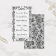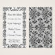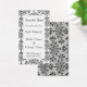 Un modèle personnalisé Enregistrer la date de carte de visite avec des lettres de script et de bloc sur un élégant damas motif de marguerites et de feuilles en noir sur blanc. Customisez-le pour changer les couleurs arrière - plans, choisir vos polices et ajouter du texte personnalisé et plus encore, même enregistrer votre conception pour plus tard.