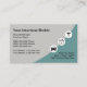 Conception d'un courtier ou d'un carte de visite d'assurance dans un design moderne épuré et image d'une maison, d'une automobile et d'un symbole médical représentant l'assurance des propriétaires, l'assurance médicale et l'assurance automobile. Conçu pour un agent, une agence, un représentant indépendant ou un courtier. Présenté sur un stock en papier carte de visite d'angle arrondi.