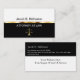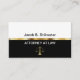 Cartes de visite d'avocat avec un design puissant mais simple en noir et blanc sur deux côtés, qui comprend une échelle de justice simulée en or, une ligne de séparation en or et une mise en page de texte que vous pouvez personnaliser. Meilleures cartes de visite pour un cabinet d'avocats, un bureau d'avocat ou un défenseur légal.