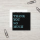 Petites cartes de remerciement client noires avec modèle de code QR. "Merci tellement" est le texte en gras sur le devant en bleu clair. Le dos de la carte est blanc avec le code QR et plus de texte. Incluez également le site Web de l'entreprise et / ou toute autre information.