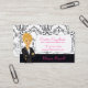 Des cartes de visite de damassé de caractère de femme de bande dessinée - créez un carte de visite fait sur commande avec ce caractère mignon pour vous promouvoir des affaires !