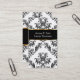 Cartes de visite de décorateur intérieur avec le motif de damassé et la disposition noirs et blancs des textes que vous pouvez customiser maintenant. Carte de visite élégant qui est distinctif et frais. Les meilleurs cartes de visite pour des thèmes se sont rapportés à la décoration, aux accessoires à la maison et au design d'intérieur.