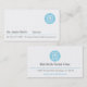 Un carte de visite professionnel, moderne et élégant pour les dentistes. Il présente un logo en cercle bleu avec un contour de dent molaire en forme de coeur avec un signe de premiers soins. Idéal pour les dentistes qui allaitent les dents des patients en retour à la santé. Personnalisez facilement vos informations professionnelles.