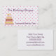 Cartes de visite de gâteau d'anniversaire personnalisables amusants. Nos cartes de visite uniques présentent un dessin de gâteau d'anniversaire sur un arrière - plan de pois rose. Modifiez tous les champs de texte pour ajouter les informations de votre société. Ces cartes de visite mignons sont imprimés sur 2 côtés et seraient parfaits pour les entreprises de gâteaux.