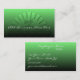 cartes de visite customisés qui arborent une silhouette de 2 palmiers sur une île aux vagues au fond. L'arrière - plan est un vert pâle qui s'estompe en noir. Ces cartes de visite customisés seraient parfaits pour les entreprises près de la plage - magasins de surfs, magasins de vêtements de plage, restaurant et pubs. Assurez-vous de customiser tous les champs de texte avec votre style de police et vos couleurs préférées.