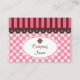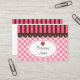 Des rayures de couleur bonbon rose et brune, des en vichy, des points chocolat et des coquilles Saint-Jacques donnent à ce cupcake carte de visite de style rétro. Utilisez ce carte de visite pour une boulangerie, boutique, boutique, restauration, etc...Customisez les informations pour répondre à vos besoins, ajoutez ou supprimez du texte, etc. Les motifs sont issus de l'art original.