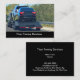 Cartes de visite de conducteur de camion de remorque de camion de remorque de voiture moderne dans un modèle de conception deux côtés cool avec image de remorque plate transportant des véhicules sur la route dans l'arrière - plan.