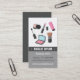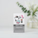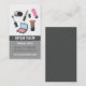 Un carte de visite élégant avec illustration numérique de divers accessoires de maquillage et des éléments essentiels comme le rouge à lèvres, le mascara, une brosse à visage en poudre et une boîte à palette de rougeurs. Parfait pour les maquilleurs, stylistes et ceux de l'industrie de la mode et des cosmétiques. Personnalisez facilement avec vos coordonnées.