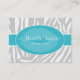 Cartes de visite de maquilleur conçus avec un emblème de nom de motif de zèbre que vous pouvez personnaliser et impression de verso incluse avec votre contact et petits groupes de société. Conçu pour des reps de ventes de cosmétiques d'un artiste professionnel de maquillage, ou des experts en matière de beauté.