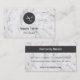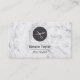 Ce carte de visite utilise un arrière - plan de marbre de texture, et une palette de couleur intemporelle chique de noir, de gris et de blanc pour communiquer un sens de l'arrangement luxueux pour le client. Dans le noir est l'icône de silhouette d'une paire de ciseaux. Grand pour des professionnels de coupe de cheveux aimez les coiffeurs, les coiffeurs et les salons de coiffure. Vous pouvez également enlever l'arrière - plan de marbre pour le maintenir minimaliste.
