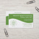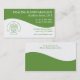 Ce carte de visite de massothérapie vert et blanc présente le logo feuille dans les mains. Pour déplacer/redimensionner le logo, ajouter/supprimer des champs de texte ou changer de couleur arrière - plan, cliquez sur "Customiser". N'hésitez pas à me contacter pour toute question.