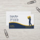 Cartes de visite de messager avec le livreur portant un paquet. Modèle simple de carte de visite pour un service de distribution, une compagnie maritime, ou une livraison de paquet.