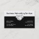 Modèle noir et blanc classique de carte de visite de mise en réseau d'affaires avec un graphique de poignée de main d'affaires et une disposition simple des textes que vous pouvez customiser en ligne. Créé en ventes, la vente, et les industries de mise en réseau et convient à n'importe quel travail comprenant le Président, le personnel administratif, les travailleurs de champ ou le propriétaire.