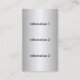 Les paillettes de scintillement dynamiques regardant la texture d'arrière - plan sur le blanc donne un regard 3d audacieux et unique et un carte de visite de professionnel-regard. Facilement personnaliser avec votre propre information. Employez la police audacieuse noire montrée ou changez facilement le style de police et le colorez. Une carte de regard unique, particulièrement grande pour des échanges des professions de construction et de construction, des véhicules à moteur industriels et qualifiés, ou la musique, le DJ, les affaires de divertissement, etc. Plus d'information peut être aussi bien mise sur le dos sur l'arrière - plan de regard métallique d'argent lisse de brosse. Un fort, amusement, carte de visite de regard fascinant qui se tient du repos. Montrée est la version verticale de la carte horizontale populaire vue chez MetalShop ici chez Zazzle.