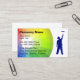 Cartes de visite de peintre avec l'arrière - plan coloré de roue de couleur dans un arc-en-ciel de couleurs avec un peintre avec une disposition de rouleau et de textes de peinture il est facile customiser que. Les meilleurs cartes de visite pour des thèmes se sont rapportés à la peinture pour bâtiments, l'entrepreneur de peinture, le peintre commercial, ou les revêtements et les approvisionnements de peinture.