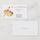 Cartes de visite appropriés à tout artiste ou professeur d'art. Cette carte comporte un arrière - plan blanc avec un dessin d'un pinceau de palette de peinture et de l'aile gauche. Tout le texte est personnalisable sur l'avant et le dos et vous pouvez ajouter plus si nécessaires.