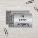 Chrome lisse de surface de regard en métal d'acier inoxydable au milieu pour votre nom ou nom de la société. L'arrière - plan est un argent de pointe et futuriste avec les pixels vert clair ou les lumières de LED. Un carte de visite moderne audacieux et unique. Facilement personnaliser avec votre propre information. La carte de regard professionnelle parfaite particulièrement pour les champs techniques, l'ordinateur, le jeu, la réparation de technologie, et les entreprises relatives électroniques. Plus d'information peut être aussi bien mise sur le dos sur le même arrière - plan en métal. Un carte de visite fort qui se tient du repos.