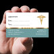 Cartes de rendez-vous de cabinet de médecin dans un style modèle élégant avec un symbole de caducée couleur or que vous pouvez utiliser sur nos cartes ou remplacer par le logo de votre entreprise. Conçu pour un médecin de famille, un médecin de groupe ou un médecin indépendant.