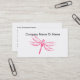 Carte de visite bilatéral simple de silhouette avec le symbole rose de libellule sur l'avant et tous votre information de l'entreprise du verso dans cette conception bilatérale vous pouvez personnaliser la couleur d'arrière - plan, l'espace des textes, et la faites fonctionner pour vous.